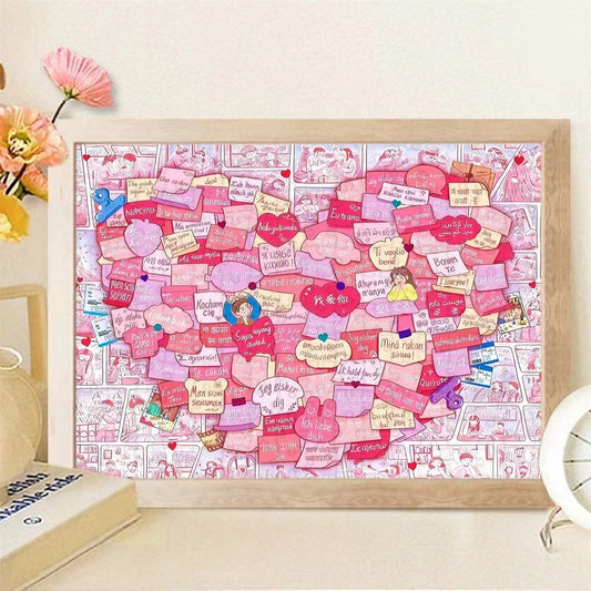 1,000-Piece "I Love You" Multilingual Jigsaw Puzzle – Romantic & Aesthetic Pink Puzzle for Adults & Teens